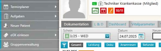 Im Permanent-Bereich der/des Patientin/en ist nun ein ePA Symbol zu sehen.